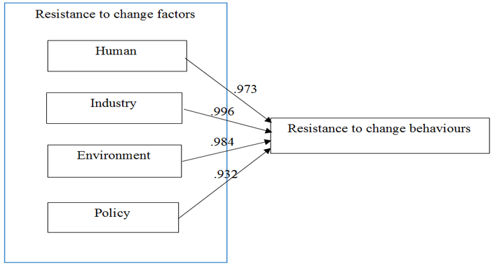 Figure-2. Conceptual model of antecedents of resistance to change behaviours towards sustainable construction practices.