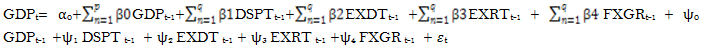 GDP = f (EXDT, DSPT, EXRT, FXGR)