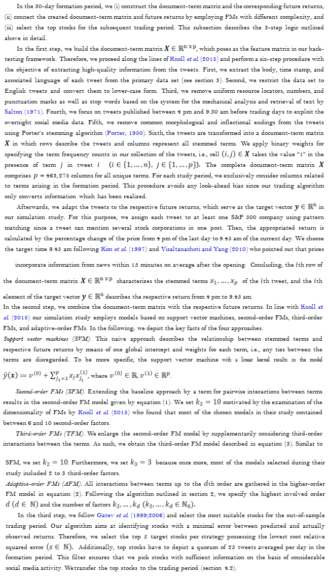 Knoll, J., J. Stu¨binger and M. Grottke, 2018. Exploiting social media with higher-order factorization machines: Statistical arbitrage on high-frequency data of the s&p 500. Quantitative Finance: 1-15. Available at: https://doi.org/10.1080/14697688.2018.1521002.