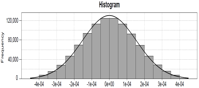 Figure-6. Empirical distribution of daily mean returns of 1,000,000 bootstrap tradings during the time frame between March 2014 and December 2015 (before transaction costs).