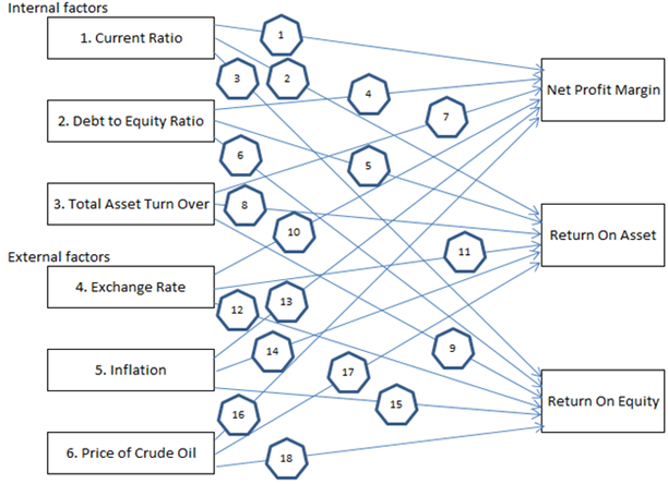 Based on Figures 1, 2 and 3, it can be concluded that the behavior of the NPM, ROA and ROE ratios in the plastics industry of Indonesia varies. It is therefore necessary to determine what causes these variations. As indicated, industrial performance is affected by external and internal factors. Internal factors are variables that have a direct relationship with management. External factors do not have a direct relationship with management, but have an indirect effect on the economy which, in turn, impacts on the performance of industrial organizations.