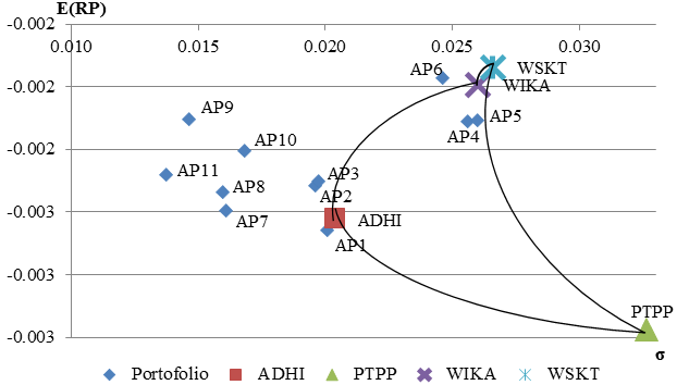 Overall, the level of expected return generated is negative. Even though the four issuers produce negative expectant returns, WSKT issuers have the smallest negative return of -0.214 percent, while the largest negative return on expectations is on PTPP issuers, which is -0.297percent. It can be interpreted that the PTPP emitter is very risky compared to other issuers, therefore investors must be observant in placing the proportion on each share of their choice.