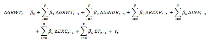 GRWT = F (NOR, REXP, INT, EXCR) (1)