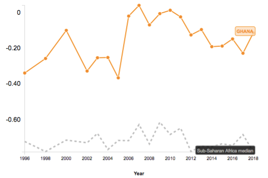Figure-2. Control of Corruption, 1996-2018 (Ghana against Sub-Saharan African Median).
