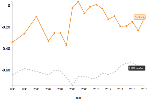 Figure-3. Control of Corruption, 1996-2018 (Ghana against Lower Middle-Income Median).