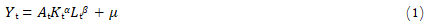 From the review of corruption-growth literature, we adapt the endogenous growth model in specifying a model that can depict the effect of corruption on growth. This study is consistent with Hall and Jones (1999) in adopting the view that total factor productivity (TFP) mainly reflects market efficiency. We assume real aggregate capital stock at any point in time, Kt, is composed of both physical and human capital. We assume the real aggregate level of output produced in the economy at time t, Yt follows a function of the TFP, real aggregate capital stock (Kt), labour (L), savings rate and efficiency of the economy as follows: Yt = AKt. The aggregate Cobb-Douglas production function is therefore, given as: