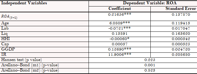 From the obtained result, ROA (t-1) indicates that the profit persistence of manufacturing industry in Bangladesh is low. A value of 0.21656 indicates a high level of market competition within this industry. As a result of this high competition, speed of convergence toward industry’s mean profit is much higher.