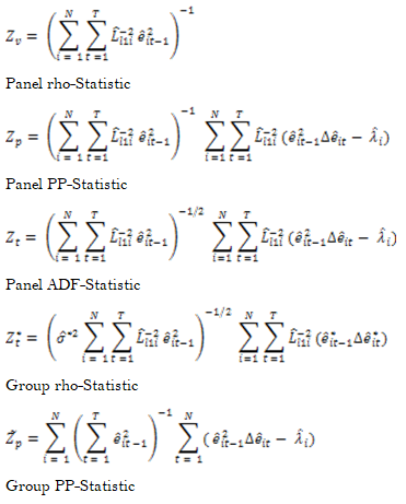 Pedroni, P. (2004). Panel cointegration: Asymptotic and finite sample properties of pooled time series test with an application to the PPP hypothesis. Economic Theory, 20(3), 325-597. Available at: https://doi.org/10.1017/S0266466604203073.