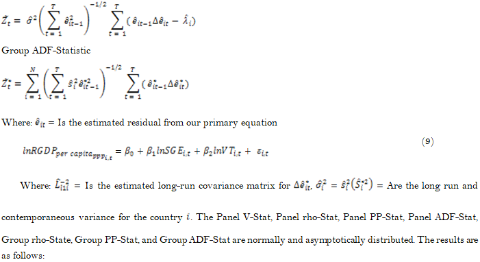 Our study identifies two kinds of test statistics the pooling residuals within the dimension of the panel and the other without the dimension. The long-run equilibrium equations are as follows: