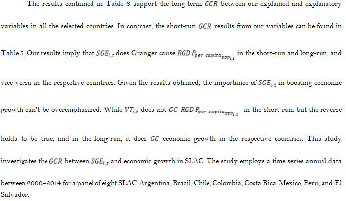 The study employs panel data between 2000 – 2014 for eight SLAC: Argentina, Brazil, Chile, Colombia, Costa Rica, Mexico, Peru, and El Salvador. These countries were selected due to data availability. The data was collected from (World Penn Tables, 2019) Real Gross Domestic Product-per capita-purchasing power parity