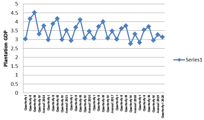 Figure-1. The Distribution of Plantation GDP to Indonesia GDP 2014-2020