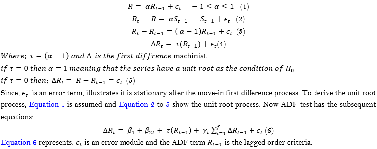 Through the Dickey and Fuller (1979) ADF test is performed on 1st differences of R (for example ∆R) and assumed ∆R is exposed to be stationary, at that point R is harmonized of order 1, or I(1).