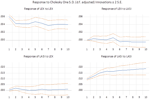 Note: LASI denotes the log of the stock market index; LEX is the log of the bilateral exchange rate.