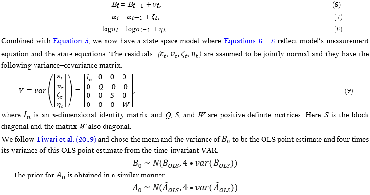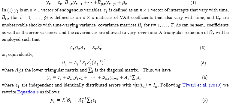Following Tiwari et al. (2019) we consider the following Time-varying VAR model: