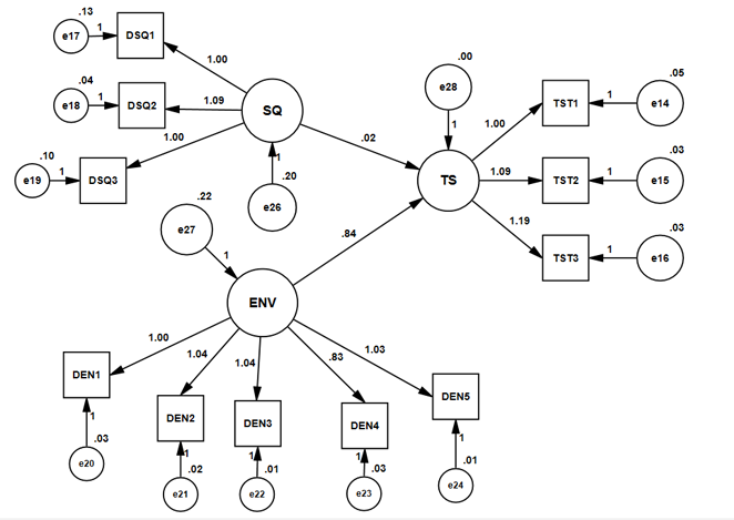 H01: There is no a statistically significant impact of destination service quality and destination environment on tourist satisfaction at α ≤ 0.05.