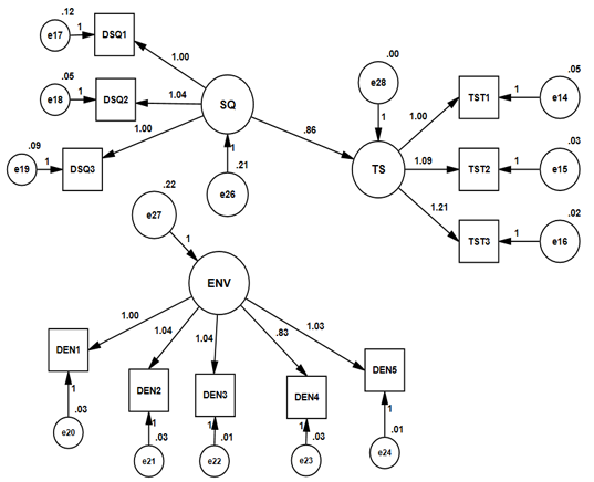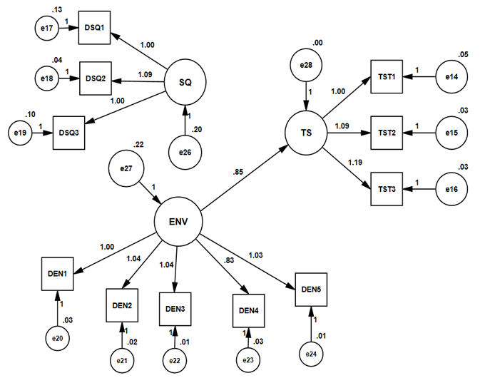This study presumed four main hypotheses related to the impact of both destination service quality and destination environment on tourist satisfaction, the impact of each of these independent variables on tourist satisfaction, and the impact of the dimensions of destination service quality on tourist satisfaction as well as the impact of the dimensions of destination environment on tourist satisfaction.