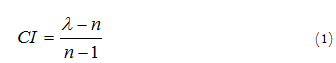 In the third step, the various criteria which had been formed in the second step are organized into a square matrix (i, j). The diagonal elements of this matrix are 1. If the element’s value (i, j) is above 1, the criteria on the i row is better than the criteria on the j column; otherwise, the criteria on the j column is better than the criteria in i row. The (j, i) element of the matrix is the opposite of the (i, j) element (Bhushan & Rai, 2004).
