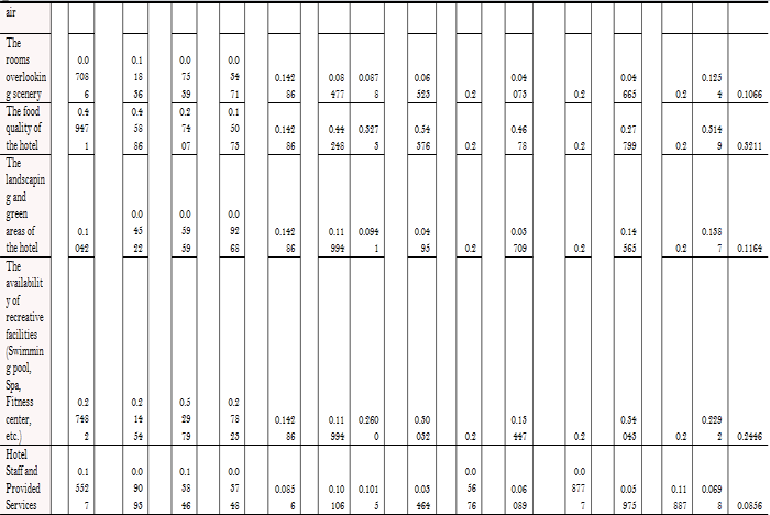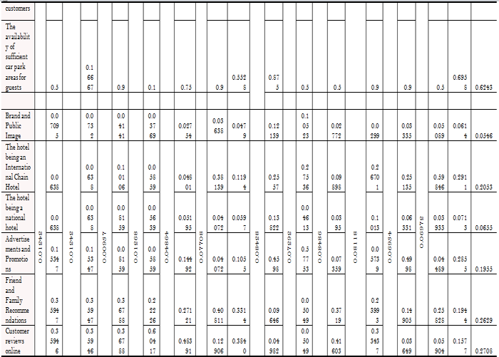 In this study, the second most important factor has been ranked as Satisfaction by the customers, including the region not having polluted air, the rooms overlooking scenery, the food quality of the hotel, availability of green areas and recreate facilities. This finding also correlates with Sohrabi et al. (2012) research findings. However, in Chu and Choi (2000) study, customers have ranked the factor relating to food and recreate services as the fifth important.