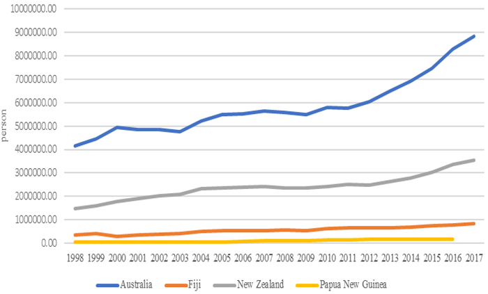 Figure-1. Number of international tourism arrivals of selected countries in Oceania.