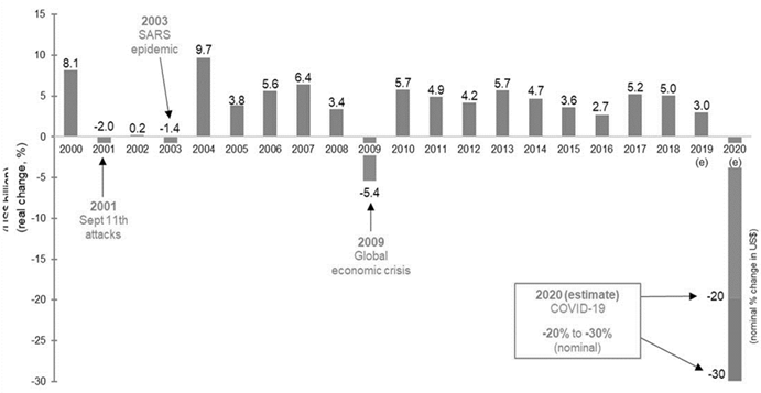 Figure-1. 2020 forecast-international tourism receipts, world (real change, %).