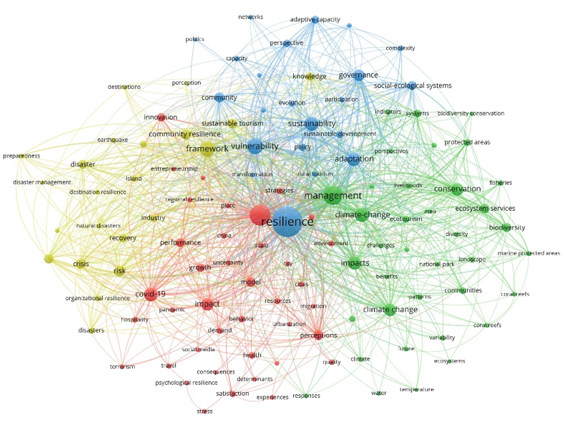 b) For the connection between tourism development and local resilience, five sub-topics of interest are identified: