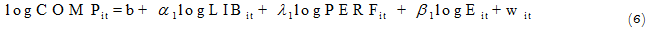 The penetration rate has a positive and significant effect on telecom market competitiveness. An increase of 1% in the penetration rate improves the competitiveness by 0.18%. This result is interesting insofar as it shows that the larger the market, the greater operators’ role in a competitive game. Here again, we stress the role of the regulator authority in the development of the competitive environment.