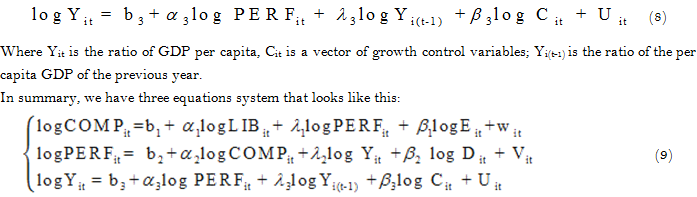 Unlike the earlier work, this article addresses the issue of liberalization in the telecom sector in the ECOWAS region, which is now a fully customs union. Moreover, while previous research dealt with the impact of telecommunications liberalization on economic growth and on firm productivity, this article analyzes if the liberalization enhances the labor productivity. Another value added of this article is the use of simultaneous equations and the triple squares method (3SLS). The methodological approach relies on both statistical and econometric analysis. Following Francois (2002) and Wang (2006) we use a “Multiple - Indicator Multiple- Cause” (MIMIC) framework, which was developed by Jöreskog and Goldberger (1975). In order to estimate all the coefficients of all the equations of the system, the 3SLS technique is adopted, using panel data.