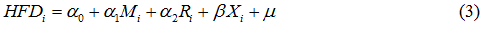 where HFDi is household food diversity measure by Berry Index and FANTA's HDDS. Mi and Ri are respectively the total number of migrants and the amount of domestic remittances received by each ith household. Xi is a vector of other variables shown in Table 2 that may influence household food diversity by various household characteristics. A note regarding the domestic migration pattern is that the migratory flow is typically from the north to south of Ghana due to the relative and stronger economic development in the south region.