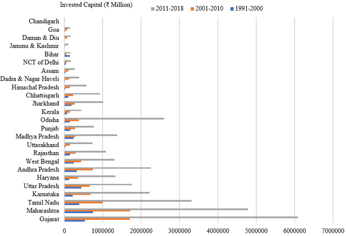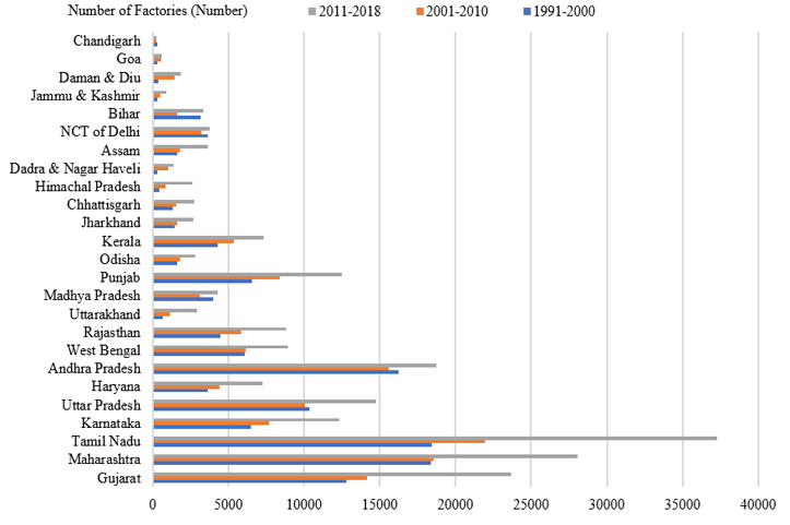 In India, the history of industrial development can be observed in five phases: industrial development during the British regime, 1950–1965, 1965–1980, 1980–1991, and industrial development since the economic reforms. Since its independence, India has achieved remarkable growth in industrial development as the share of the industrial sector in India’s GDP has increased from 20.8% in 1960 to 31.10% in 2019. Furthermore, it can also be observed that the annual growth of industry value-added was positive during 1961–2019. Accordingly, employment in the industrial sector has increased in the period 1990–2019. Per capita GDP and industry value-added per worker have also increased during 1991–2019. The national-level figure indicates that industrial development is on a growth path in India. However, Indian states display a high diversity in industrial development levels which is apparent in the variation in infrastructural development, number of factories, number of industrial workers, capital investment, the banking sector, number of branches of commercial banks, geographical location, agricultural production, educational and research institutions, government policies, population growth, business ecosystem, technological skills and education level of the workers, demand for goods and services, inflation, workforce availability, ecosystem services, capital formation, market structure, saving and investment patterns, technological development, government policies and others.