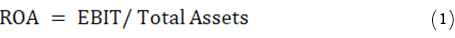 EBIT stands for Earnings before Interest and Taxes. In the present study, the book values of all tangible assets are taken as total assets to calculate the ROA.