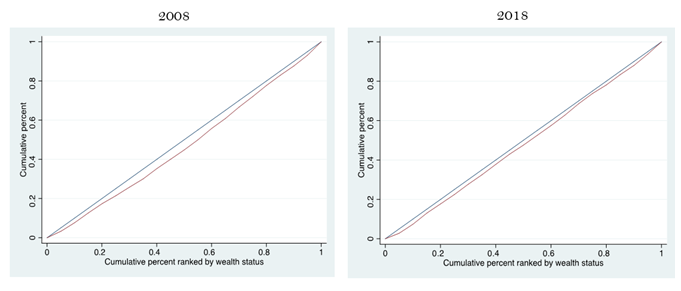 Furthermore, the CI's standardized nature makes it conducive to international comparisons, facilitating the exchange of best practices and cross-country learning. Continuously monitoring the CI over time is instrumental in tracking progress in reducing healthcare disparities. This is especially critical in the pursuit of universal health coverage and ensuring that healthcare services are accessible to all, regardless of their socioeconomic status. In sum, the CI approach is a vital tool in the arsenal of policymakers and researchers working towards more equitable healthcare systems, underpinning evidence-based decision-making and equitable healthcare access for all members of society. This methodology, widely employed in existing studies, allows us to measure and quantify the extent of inequality in accessing healthcare services (D’Uva, Jones, & Van Doorslaer, 2009) . The confidence interval (CI) comes from a CC, which shows how the total number of people who use health care over time is distributed compared to the total population, ranked by their income (Vásquez, Paraje, & Estay, 2013) . By graphically presenting the CC, a pattern of the healthcare utilization dispersion among diverse socioeconomic cohorts has been illustrated. The CC integrates two pivotal parameters, namely the extent of healthcare utilization, and the indicator for an individual's socioeconomic status. This analytical approach facilitates an exploration into how the allocation of healthcare utilization diverges amidst various wealth statuses, thereby yielding insightful implications concerning the imbalances of socioeconomic nature inherent in the access to and use of healthcare services. To evaluate the discrepancies in healthcare access based upon individual wealth, a comparison is conducted between the CC and the "line of equality." The line of equality embodies a hypothetical scenario characterized by the absence of differentials in healthcare utilization attributed to socioeconomic position. In the ideal situation, the CC would perfectly align with the 45-degree line of equality. However, in reality, if individuals with lower economic status experience higher or lower levels of health care utilization compared to those with higher economic status, the CC will deviate from the equality line. If the health care utilization variable exhibits higher values among individuals with lower economic status, the CC will be positioned above the equality line. Conversely, if the health care utilization variable shows lower values among individuals with lower economic status, the CC will fall below the 450 lines. The extent of the deviation of the CC from the 450 line indicates the extent of disparity in the health care utilization distribution. A greater distance between the CC and the 450 line signifies a more pronounced inequality in health care utilization across different economic circumstances (Vásquez et al., 2013). By examining this relationship, we can gain a sound knowledge of the socioeconomic disparities in health care use and the magnitude of their unequal distribution among different groups.