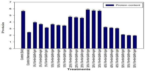 Figure-4. Graph shows the combined effect of FA, SAR and root-knot nematode leaf protein content in pumpkin Var. Nutan.