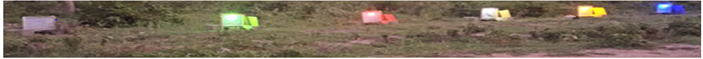 Twelve (12) fabricated light traps were constructed using transparent polyethylene sheetings attached to two wooden frames (served as the screen) in May, 2019. Each of five traps were attached with one of White, Blue, Green, Yellow and Red light-emitting diode (LED) bulbs (ECOMIN-QP05014/3W; AC220-240V/50-60Hz) at 1m above ground level. A trap without bulb served as the control set-up and all were arranged in a Completely Randomized Design (CRD). Same setting was made for incandescent bulbs (JUNGSRAM 25W; G45, 220V, E27, 1000h). Traps were spaced 3m apart and a bowl containing ¾ level of water with 2% liquid soap (collection medium) was placed beneath each trap as shown in Figure 1.