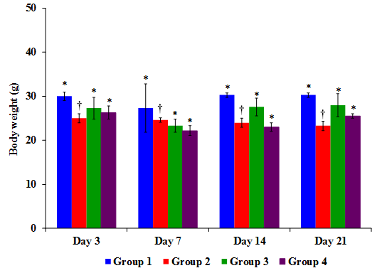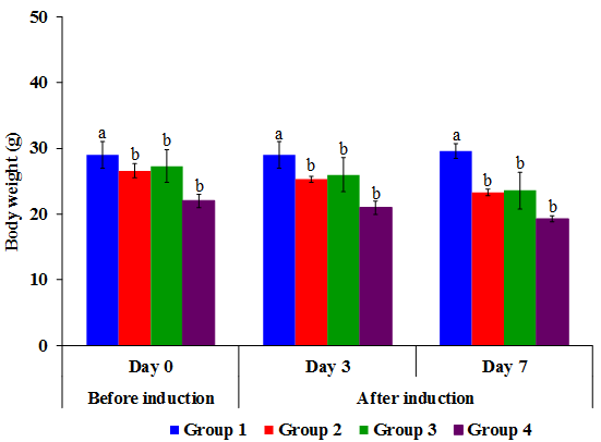Figure-4. Body weight variation in mice before and after induction of diabetes.