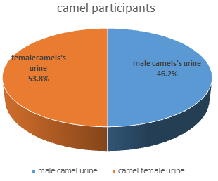 Of the 13 camel urine samples tested 6 (46.2%) were males while the other 7 (53.8%) were females Figure 1.