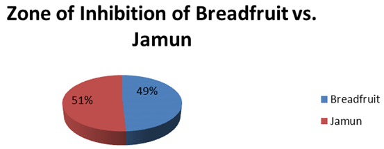 Figure-5. Pie chart showing zone of inhibition of Breadfruit vs. Jamun.