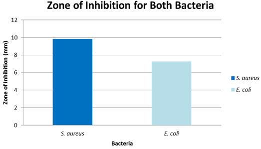 Figure-6. Graph showing average zones of inhibition for S. aureus vs. E. coli.