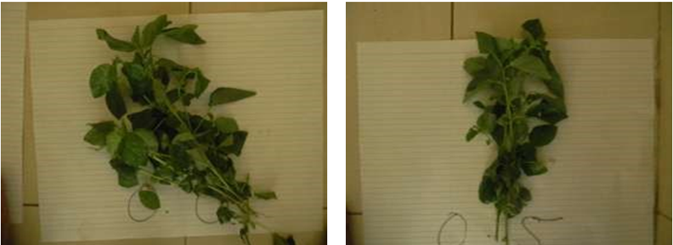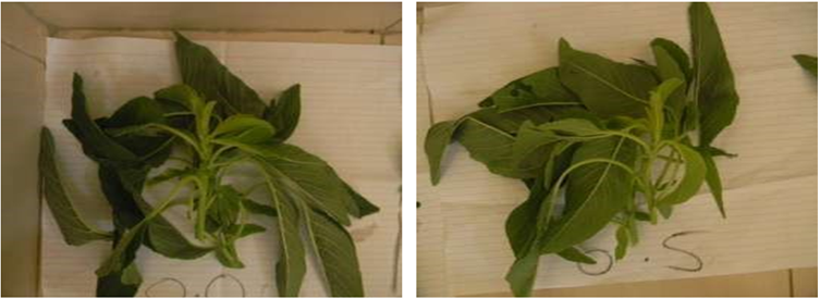 It can be observed from Figure 2 that most (98%) of the vegetables wilted on the 24th hour after harvesting, however, fewer leaves from Amaranthus cruentus and Corchorus olitorius at an application rate of 1.1 tonnes per hectare were partly fresh. According to Abukutsa-Onyango (2002), most African leafy vegetables are highly perishable and have a shelf life of less than 24 hours.  After 24 hours of storage, most of the vegetables had wilted.  Wilting is a result of a reduction in cell turgor that reduces the turgidity of the plant. There were no significant changes in the green colour of the leaves. This may be a result of the absence of ethylene in the storage room.  Ethylene accelerates senescence and loss of green colour in leafy vegetables. It decreases the storage life and quality of vegetables. All the samples finally dried up 48 hours after harvesting. The high moisture content in the two leafy vegetables resulted in the short shelf life of the vegetables leading to (98%) wilt within 24 hours of storage and total dryness within 48 hours of storage.