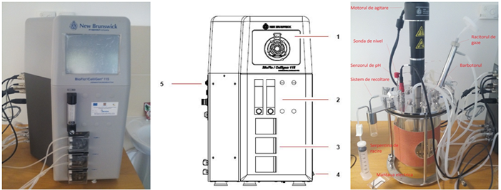 New Brunswick BioFlo115 is a new generation compact and autoclavable bioreactor, manufactured by Eppendorf (2012). This bioreactor can be used in batch, fed-batch and continuous operation, and the process control is ensured by regulating process variables such as pH, DO, stirrer speed, temperature, pumps flows, foam, level. The structure of New Brunswick BioFlo115 (Fig. 4) is similar with the Biostat reactor: