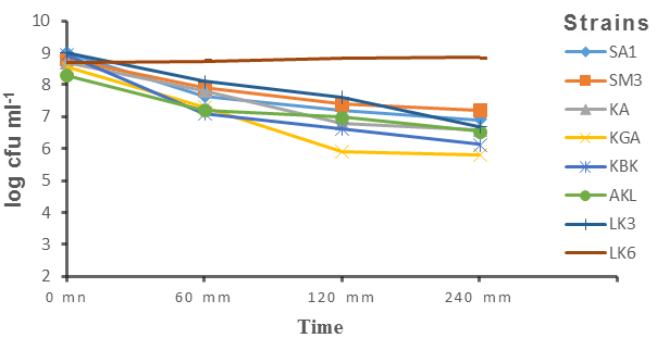 Figure-4. Tolerance of Bacillus strains to simulated gastric juice.
