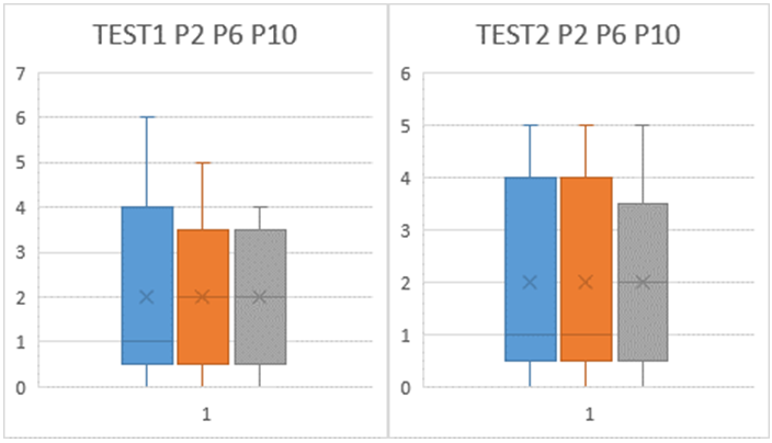 In Test 2, 3.8% indicated that they did not take care (indications 0 to 4 on the scale of 0 to 10), while 48.3% stated that they were very careful (indications 8 to 10 on the scale of 0 to 10), while 48.1% were on the acceptable scale (indications 5 to 7 on the scale of 0 to 10). Figure 3 shows a significant improvement in Test 2 with a 7.5% increase in the maximum care strip.