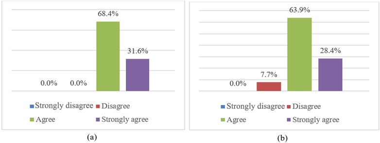 Figure 2. Student responses regarding use of (a) development of mobile learning media and (b) ability to use smartphones.