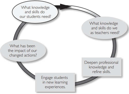 Figure 1. Teacher inquiry and knowledge-building cycle to promote valued student outcomes.
