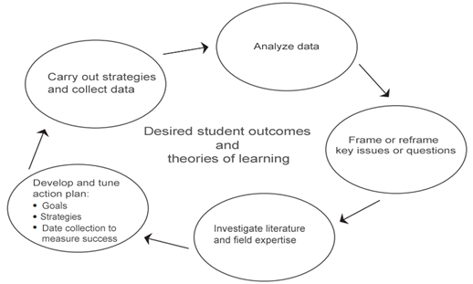 The foundation of inquiry began with Dewey (1938) Theory of Inquiry which identified the gaps between thought and action and research and practice (Dewey, 1938; Schön, 1992). Inquiry was described as beginning with a challenge with an unclear solution where the inquirer is “in it and in transaction with it” Schön (1992). Schön (1992) used Dewey’s Theory of Inquiry to focus on reflective practice with three specific components: knowing-in-action, reflection-in-action, and reflective conversation with the situation. Within knowing and reflecting in action, an important concept is outlined. Schön (1992) explained that those working and reflecting upon their practice often have difficulty describing what is already known or may give inaccurate descriptions adding to the overall confusion. The idea of action without knowledge is common but not always recognized. Action without knowledge is also significantly relevant to quality assurance and the challenges that EPPs face identifying best practices that make a substantive difference in candidate and program performance. Schön (1992) concepts derived from the original Theory of Inquiry outline the importance of using inquiry as educators to become increasingly responsive and consciously reflective to have a greater impact on current practices.