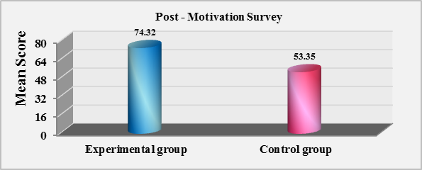This study also found statistically significant difference in motivation between the experimental and control group in learning as shown in post-Motivation Survey scores. Motivation is especially important as it the driving force behind learning. Motivation is currently an under-researched topic in virtual learning environments. Understanding motivation could be tremendously important in the field of education, as it could offer a predictive as well as prescriptive view of behavioral change.