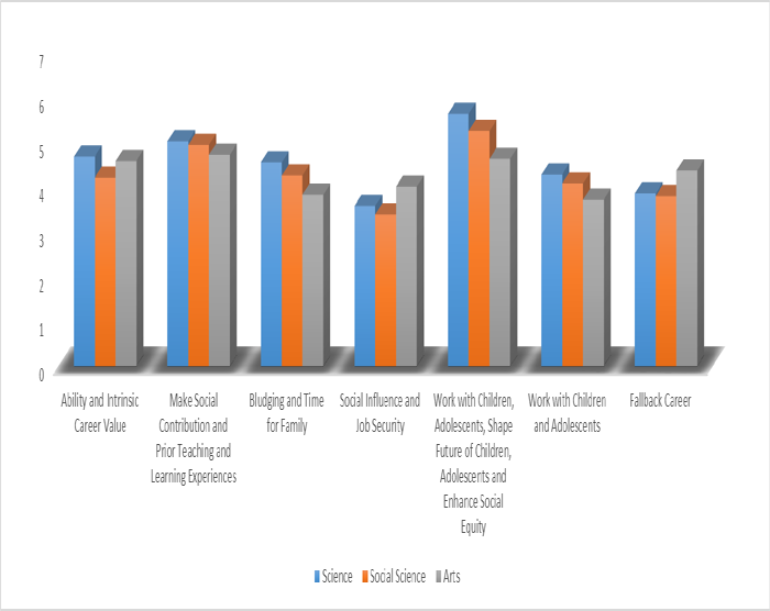 Figure-2. Influence of motivational factors on preservice students’ choice of a teaching career by subject area.