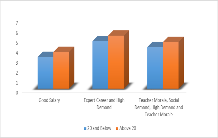 Another variable investigated in this study for its potential influence on the choice of teaching was the age of preservice students: whether the same factors influenced those under and over the age of 20 were examined. Richardson and Watt (2005, as cited in Evans, 2011) found that mature students changing career were more influenced by personal utility values, whereas those students of traditional age were more likely to be motivated by personal utility values and their previous teaching experiences. Sinclair (2008), however, reported that the majority of participants were more motivated by intrinsic and extrinsic factors.