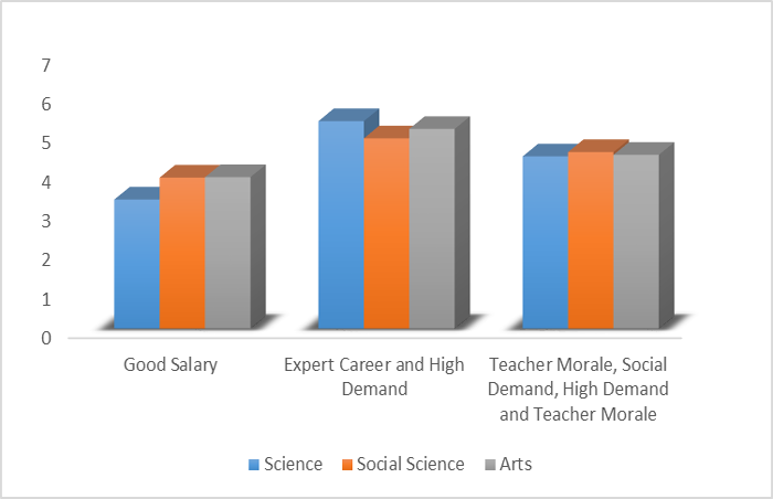 In contrast, there was no significant difference between the motivational factors in terms of the science, social science, or arts subject areas. Kılınc. et al. (2012), however, did reveal a significant difference between science and non-science students: the former being less positively motivated than the latter. Moreover, Boz and Boz (2008) found that both intrinsic and extrinsic factors influenced the choice to teach among mathematics and chemistry students, and likewise, Kilinc and Mahiroglu (2009) among biology students, while Topkaya and Uztosun (2012) discovered English students were motivated by altruistic and intrinsic reasons. The motivational effect of Expert Career/High Demand beliefs were found to be significant in terms of gender and age, and beliefs in Good Salary significant in relation to subject area. Similarly, Kılınc. et al. (2012) found women more than men were motivated to choose a teaching career by the belief in an Expert Career/High Demand. Furthermore, the finding of this study that subject area was significant for choosing a teaching career owing to the belief in a Good Salary showed that this perception exerted a greater influence on arts students. Contrary to this study, Kılınc. et al. (2012) found that women were more satisfied with their choice of teaching than men. The findings of this study imply that both men and women, those aged under and over 20, and students in all subject areas decided to remain teachers for the same reasons: there were no significant factors affecting their decision-making; they were satisfied with their choice.