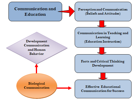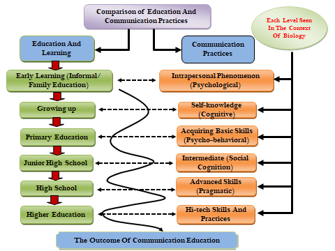 For this purpose, there is a need to first design a framework to understand how communication sciences or related intelligence practices can act as stimulus to students’ understanding of the biology content in their curriculum. Figure 1 is a framework of the paradigm of Communication sciences in relationship with education practices. It shows the linkages between education and communication until the learning outcomes are accomplished: