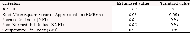 Table-5 . Results of good conformity test for conformity of the structural model with the collected data.